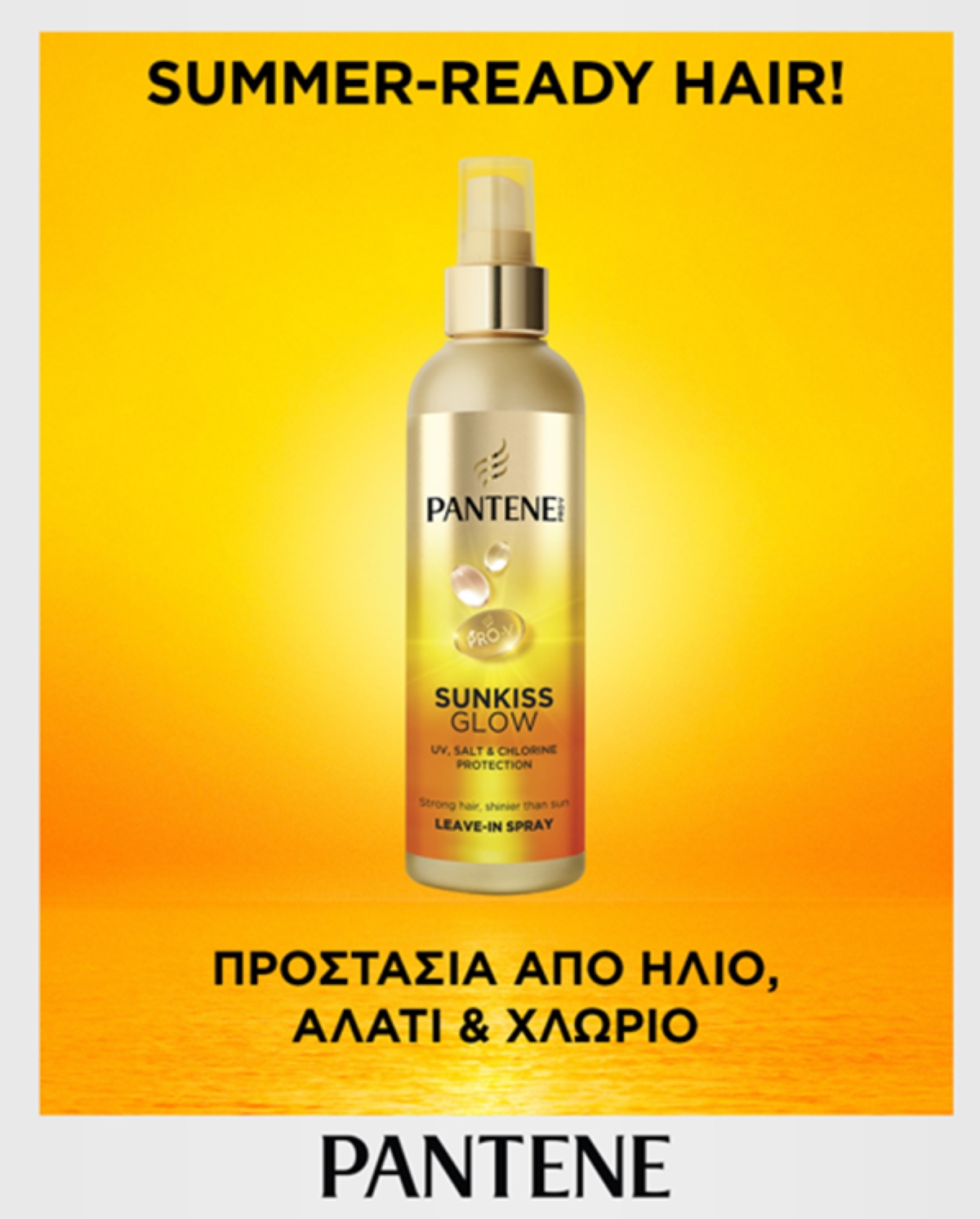 Φέτος το καλοκαίρι δεν θα αγχωθείς για τους μεγάλους «εχθρούς» των μαλλιών σου: τις ακτίνες UV (UVA/UVB), το αλάτι της θάλασσας και το χλώριο της πισίνας γιατί χάρη στο νέο Pantene Sunkiss Glow Leave-In Spray θα έχεις την απόλυτη προστασία!