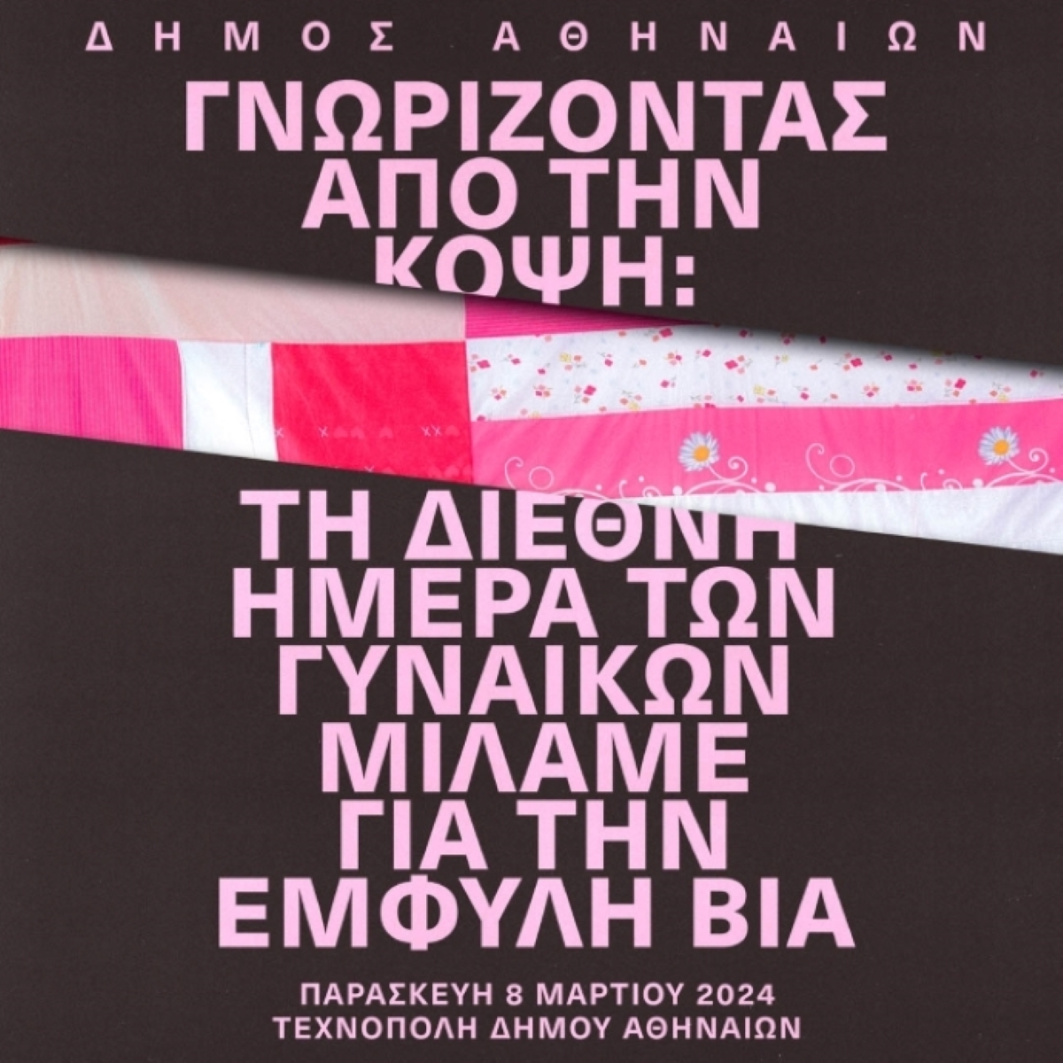 - «Γνωρίζοντας από την κόψη: Τη Διεθνή Ημέρα των Γυναικών μιλάμε για την έμφυλη βία» | 8 – 10 Μαρτίου 2024, Τεχνόπολη Δήμου Αθηναίων