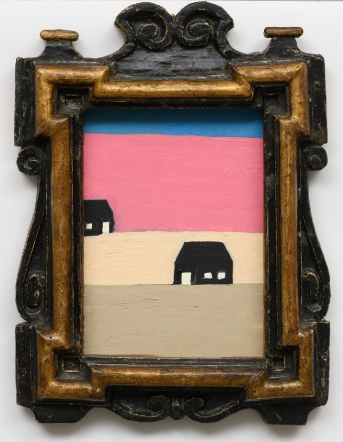 Στον κεντρικό τοίχο της έκθεσης στο Μουσείο, παρουσιάζεται μια ενότητα από ζωγραφισμένα σχηματοποιημένα «σπίτια» που αποτελούν μέρος μιας ιδιωτικής συλλογής στη Ρώμη.