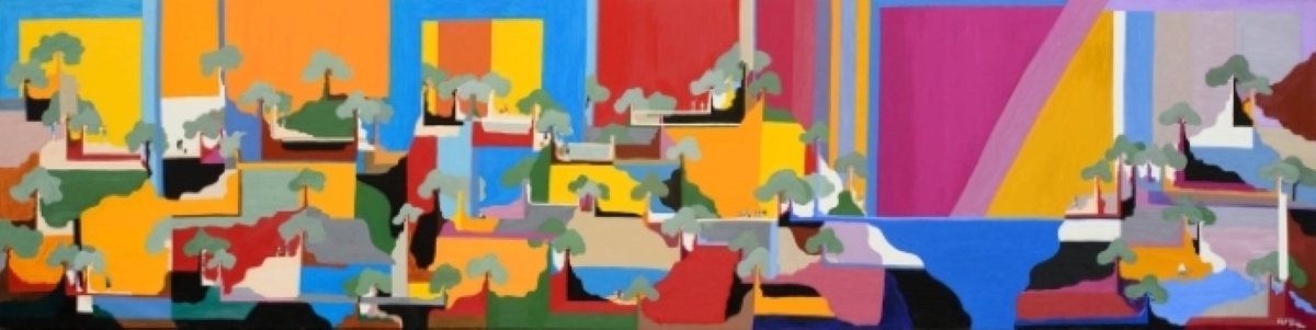 Με φορά από τα αριστερά προς τα δεξιά, το φως μεταβάλλεται και κλιμακώνεται, εκτεινόμενο από τις θερμές αποχρώσεις της αυγής και τη θριαμβική δυναμική του μεσημεριανού ήλιου του Νότου, ως τα απαλά ρόδινα του λυκόφωτος.
