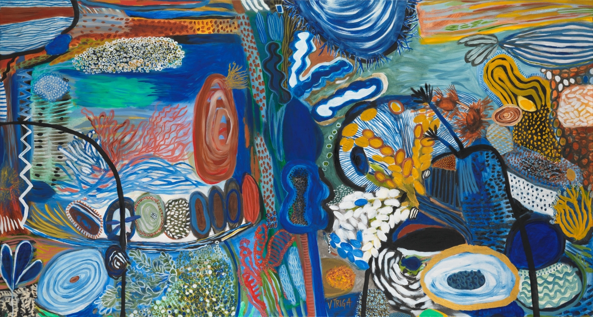 Το έργο της Τρίγκα διακρίνεται για την έντονη εικαστική και ποιητική του υφή, αλλά και για την ιδιαίτερη χρωματική του οικονομία: το lapis lazuli μπλε, το λευκό, οι υφές της πέτρας και του φυτικού κόσμου ορίζουν το λεξιλόγιο μιας ζωγραφικής παρόρμησης και μνήμης, όπου ο ορίζοντας «καταργείται όταν το επιτάσσει ο καιρός».
