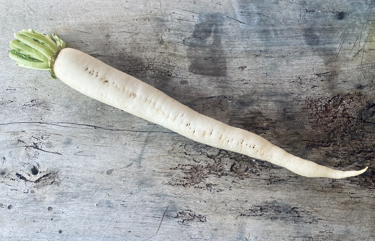 Το νταϊκόν (daikon) προέρχεται από την Ανατολική Ασία, συγκαταλέγεται στα ραπανάκια και είναι ιδιαίτερα δημοφιλές στην Ιαπωνία. Το όνομά του στα Ιαπωνικά σημαίνει «μεγάλη ρίζα». Είναι όντως αυτό, μια ρίζα μεγάλη και μακρόστενη σαν ένα τεράστιο λευκό καρότο.