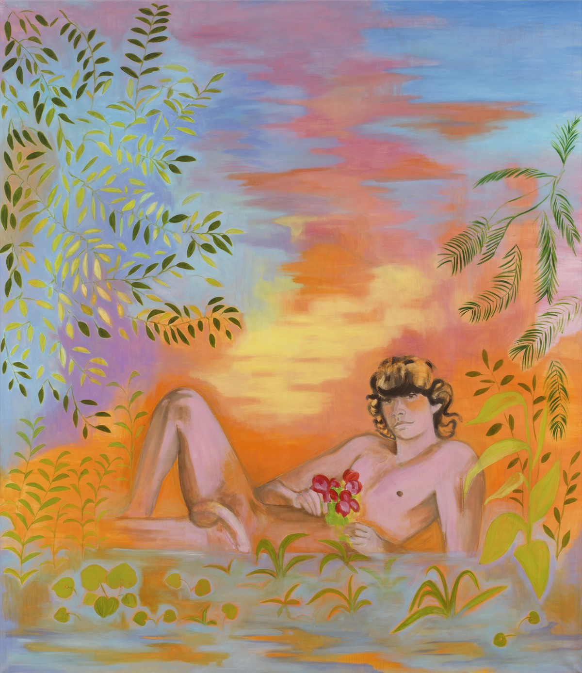 «Man with flowers (he confessed)», 2022. Ευγενική παραχώρηση της Γκαλερί Ελένη Κορωναίου και της καλλιτέχνιδας Φωτογραφία: Studio Vaharidis