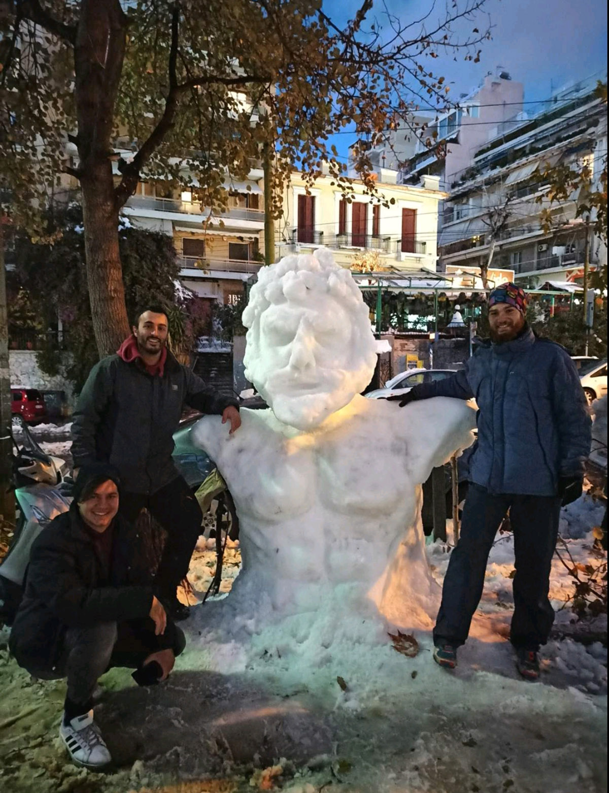 Η κακοκαιρία «Μήδεια» προκάλεσε πολλά προβλήματα. Μακριά από αυτά, μια ομάδα νεαρών στο Παγκράτι αξιοποίησε το χιόνι ως καλλιτεχνική πρώτη ύλη για να φτιάξει ένα πρωτότυπο γλυπτό. Ο Αχιλλέας Μανταίος, φοιτητής της ΑΣΚΤ, εξηγεί πώς δημιουργήθηκε η παγωμένη ανδρική φιγούρα που έζησε λίγο αλλά συζητήθηκε πολύ.