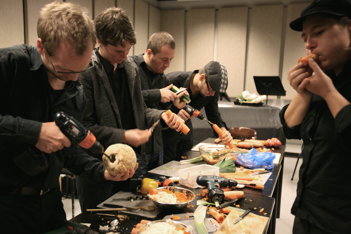 Πριν από κάθε παράσταση, τα μέλη της ορχήστρας επισκέπτεται τοπικές αγορές για να επιλέξουν φρέσκα, καλής ποιότητας λαχανικά, τα οποία στη συνέχεια αδειάζουν, σκαλίζουν, επεξεργάζονται με προσοχή. Όπως είναι φυσικό, το τελικό αποτέλεσμα είναι κάθε φορά διαφορετικό κι έτσι η ορχήστρα προσαρμόζεται στις ιδιαίτερες απαιτήσεις κάθε παράστασης. Μέσα από όλη αυτή τη διαδικασία αναδεικνύει τόσο η δεξιοτεχνία των μουσικών, όσο και η φευγαλέα φύση της τέχνης τους.