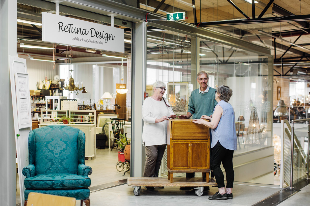 Το καινοτόμο επιχειρηματικό μοντέλο του ReTuna δεν θυμίζει τα thrift και vintage shops που συνήθως είναι ασφυκτικά γεμάτα με αντικείμενα. Έχει μεγάλη γκάμα προϊόντων (ρούχα, αθλητικός εξοπλισμός, είδη σπιτιού, παιδικά παιχνίδια, αντίκες, ακόμη και ένα κατάστημα μεταχειρισμένων Ikea) και την ατμόσφαιρα των μεγάλων εμπορικών. Στο ReTuna, το ήρεμο περιβάλλον αμφισβητεί το στίγμα του μεταχειρισμένου και επαναπροσδιορίζει την εικόνα και την εμπειρία της βιώσιμης λιανικής πώλησης.