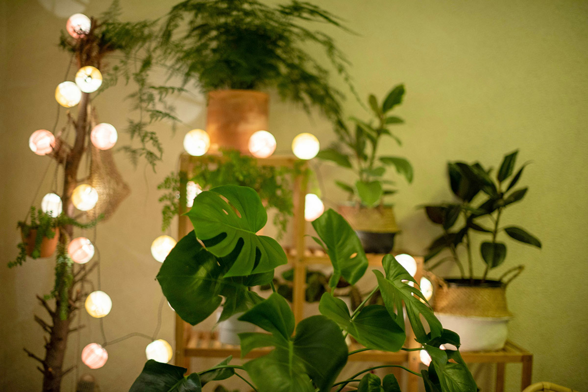 Για να φωτίσεις τον χώρο, βάλε ηλιακά φαναράκια και γιρλάντες με ζεστό φως. Επίσης, απόφυγε τα έντονα φώτα, ώστε να μπορείς να απολαμβάνεις τον νυχτερινό ουρανό. Αν θες, μπορείς να τονίσεις κάποια ιδιαίτερα φυτά.