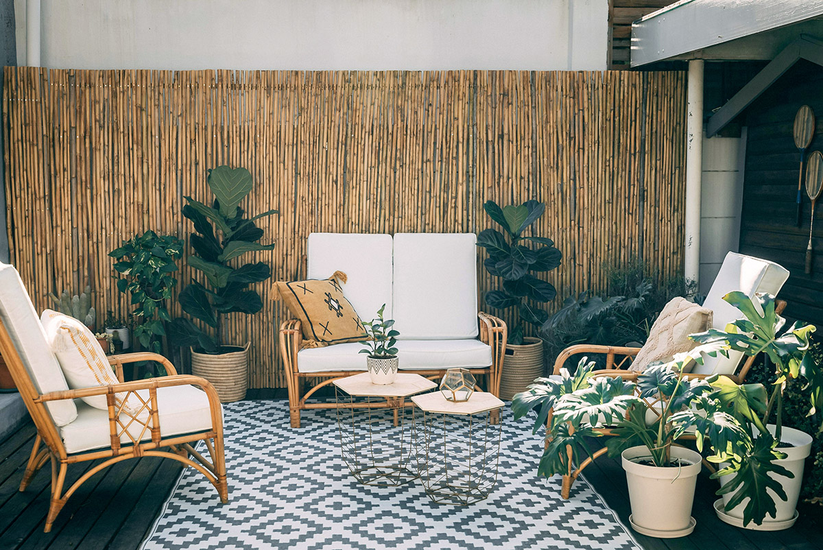 Επίλεξε ξύλινα έπιπλα, μεγάλα μαξιλάρια δαπέδου, υφάσματα σε γήινους τόνους, καλαμωτές για σκίαση. Δημιούργησε έναν ξεχωριστό χώρο χαλάρωσης και ηρεμίας ανάμεσα στα φυτά.
