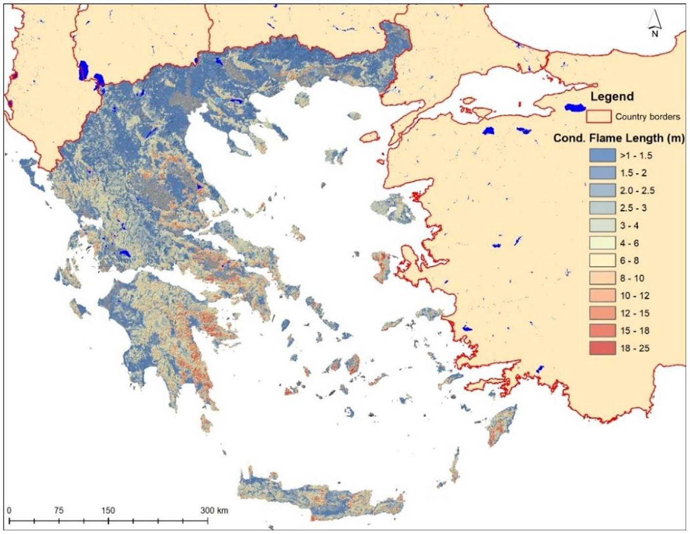 Πρόκειται για την αναμενόμενη ένταση της πυρκαγιάς, με ορισμένες περιοχές να εμφανίζουν πιθανό ύψος φλόγας άνω των 18 μέτρων.