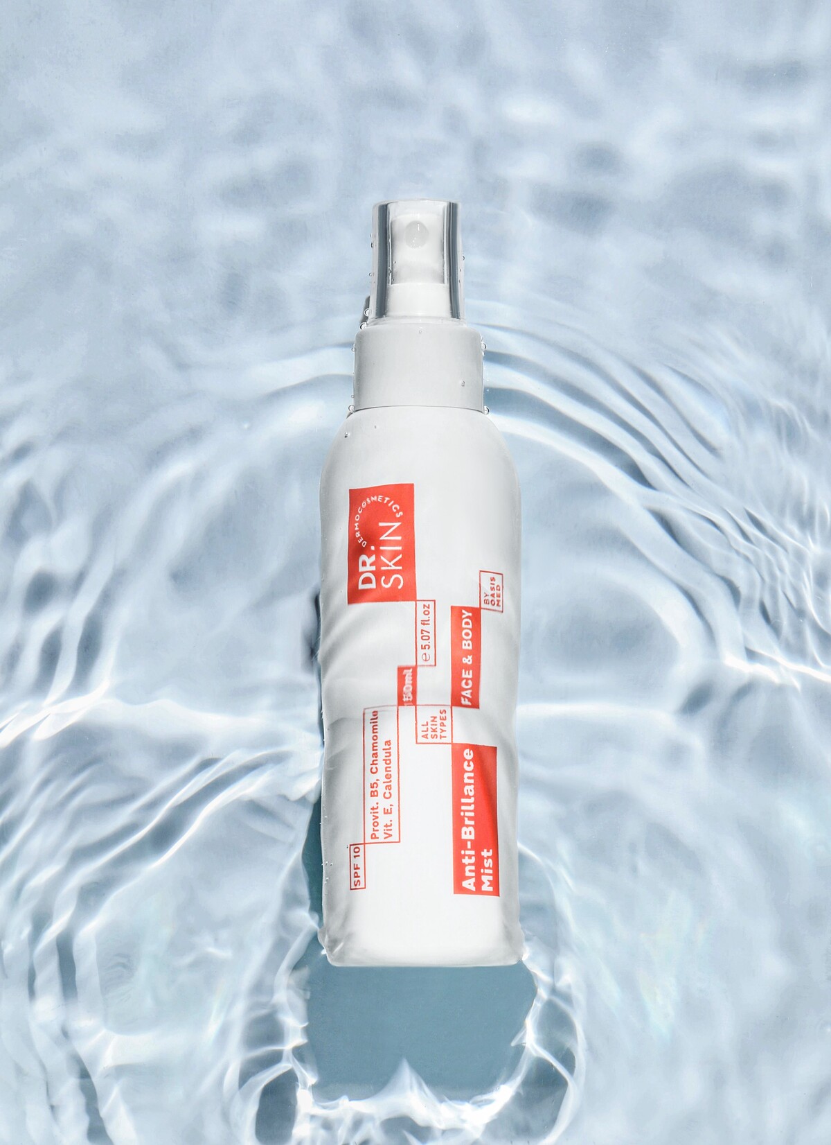 Το τρίτο προϊόν της νέας αντηλιακής σειράς της DR.SKIN είναι τόσο πρακτικό που δεν θα εγκαταλείψει ποτέ την τσάντα σου από τη στιγμή που θα το πρωτοδοκιμάσεις. Το Anti-Brillance Mist SPF10 είναι ένα σπρέι προσώπου και σώματος για on-the-go αναζωογόνηση, ενυδάτωση και προστασία από την ηλιακή ακτινοβολία κατά τη διάρκεια της ημέρας. Το ψεκάζεις οποιαδήποτε στιγμή η επιδερμίδα σου χρειάζεται ανανέωση και δροσιά, ενώ είναι ιδανικό και ως βάση για μακιγιάζ με ματ αποτέλεσμα ή ως σπρέι σταθεροποίησης του μακιγιάζ για μεγαλύτερη διάρκεια. Όπως σε όλα τα προϊόντα της DR.SKIN, έτσι και εδώ η σύνθεση περιέχει εξαιρετικά συστατικά: βιταμίνη Ε, προβιταμίνη Β5, γλυκερίνη για άμεση ενυδάτωση και διατήρηση της υγρασίας, καταπραϋντικά εκχυλίσματα χαμομηλιού και καλέντουλας, καθώς και εκχύλισμα ανανά, που απομακρύνει τα νεκρά κύτταρα, προσδίδει απαλότητα και βελτιώνει την υφή της επιδερμίδας.