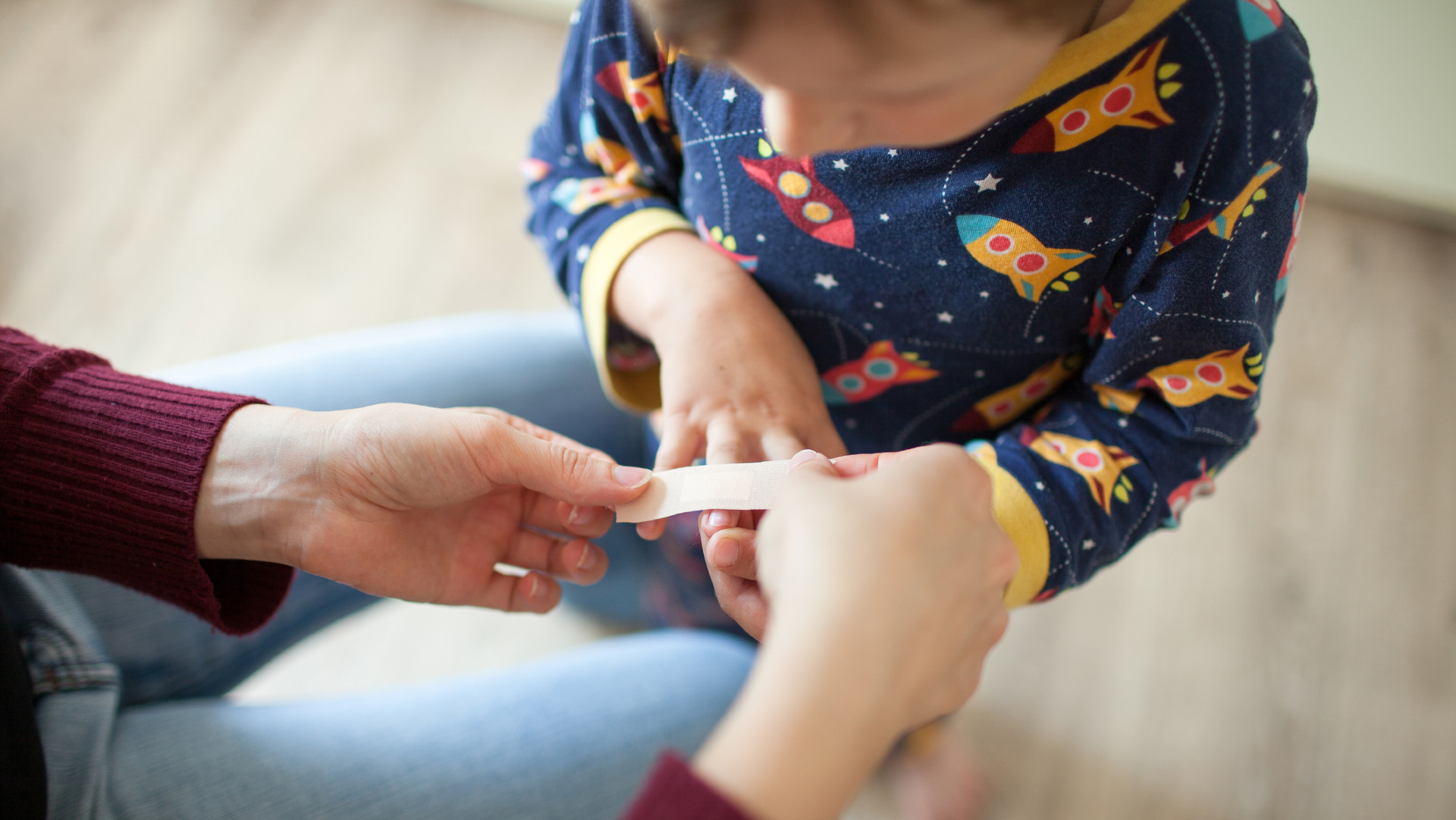 Τι σημαίνει αυτό πρακτικά; Σε ένα πολύ μικρό παιδί, για παράδειγμα, μπορείτε να καθαρίσετε την πληγή, να βάλετε ένα τσιρότο, να του αποσπάσετε την προσοχή και να του πείτε ότι το τραύμα προστατεύεται και μπορεί να συνεχίσει το παιχνίδι του. Ένα παιδί μεγαλύτερης ηλικίας μπορεί να εμπλακεί περισσότερο στη διαδικασία, επιλέγοντας π.χ. το τσιρότο.