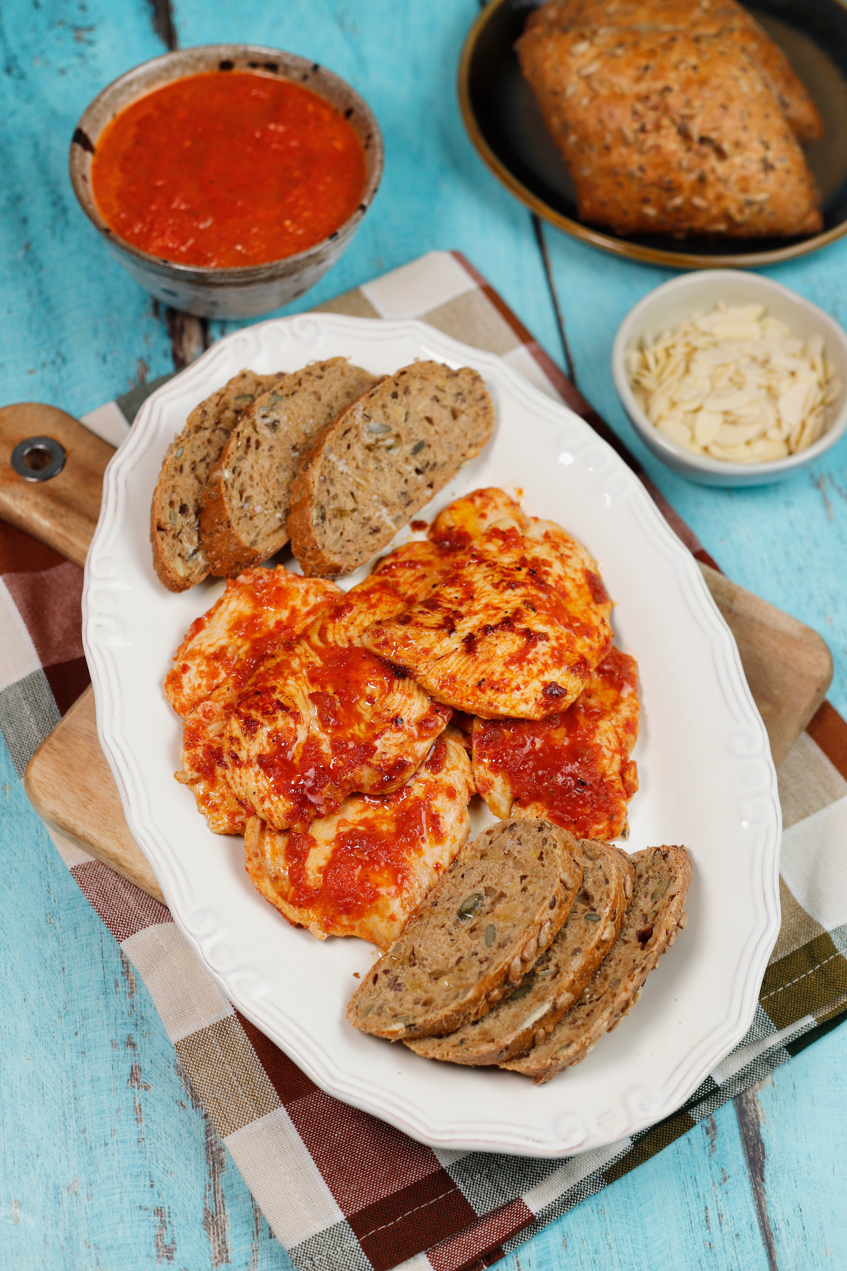 Συνταγή για ψητό κοτόπουλο μαριναρισμένο σε σάλτσα Ρομέσκο