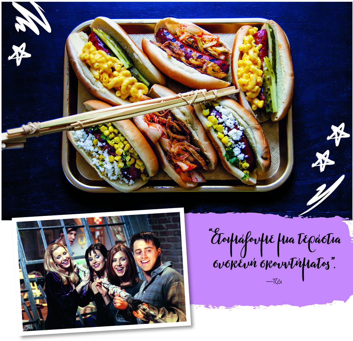 Αν παρακολουθούσες φανατικά τη σειρά Τα Φιλαράκια, τότε η συνταγή «Πάρτι με χοτ ντογκ» από το βιβλίο Friends. Η τηλεοπτική σειρά. Οι αυθεντικές συνταγές, των εκδόσεων Ελληνικά Γράμματα, θα σε ενθουσιάσει και θα σου θυμίσει το 8ο επεισόδιο του 3ου κύκλου: «Αυτό με την τεράστια συσκευή σκουντήματος».