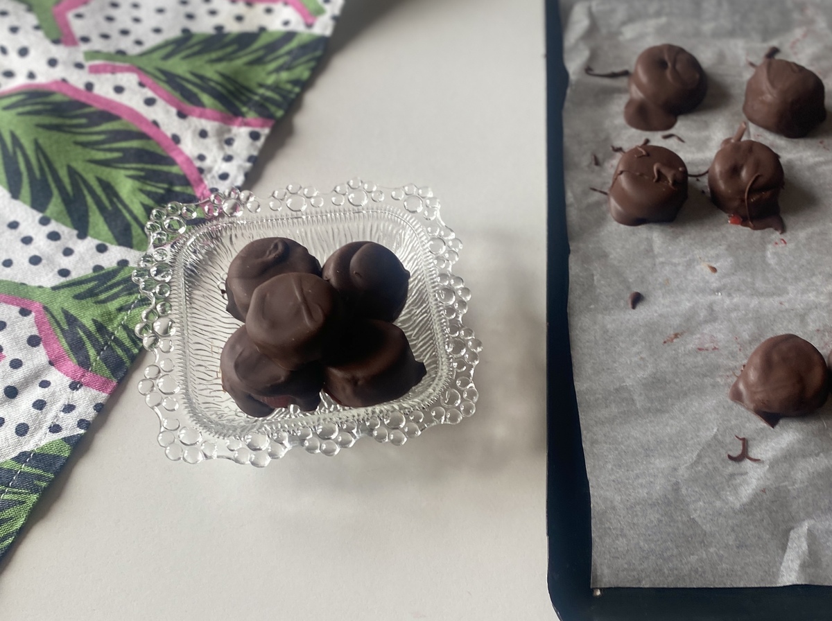 Δεν πρέπει να τα αφήσουμε απλά να κάθονται στη ζεστή σοκολάτα, γιατί κινδυνεύουν να λιώσουν. Η διαδικασία πρέπει να γίνεται με γρήγορες κινήσεις, ώστε η σοκολάτα να σκληρύνει γύρω από τον παγωμένο πυρήνα πριν αυτός αρχίσει να λιώνει.