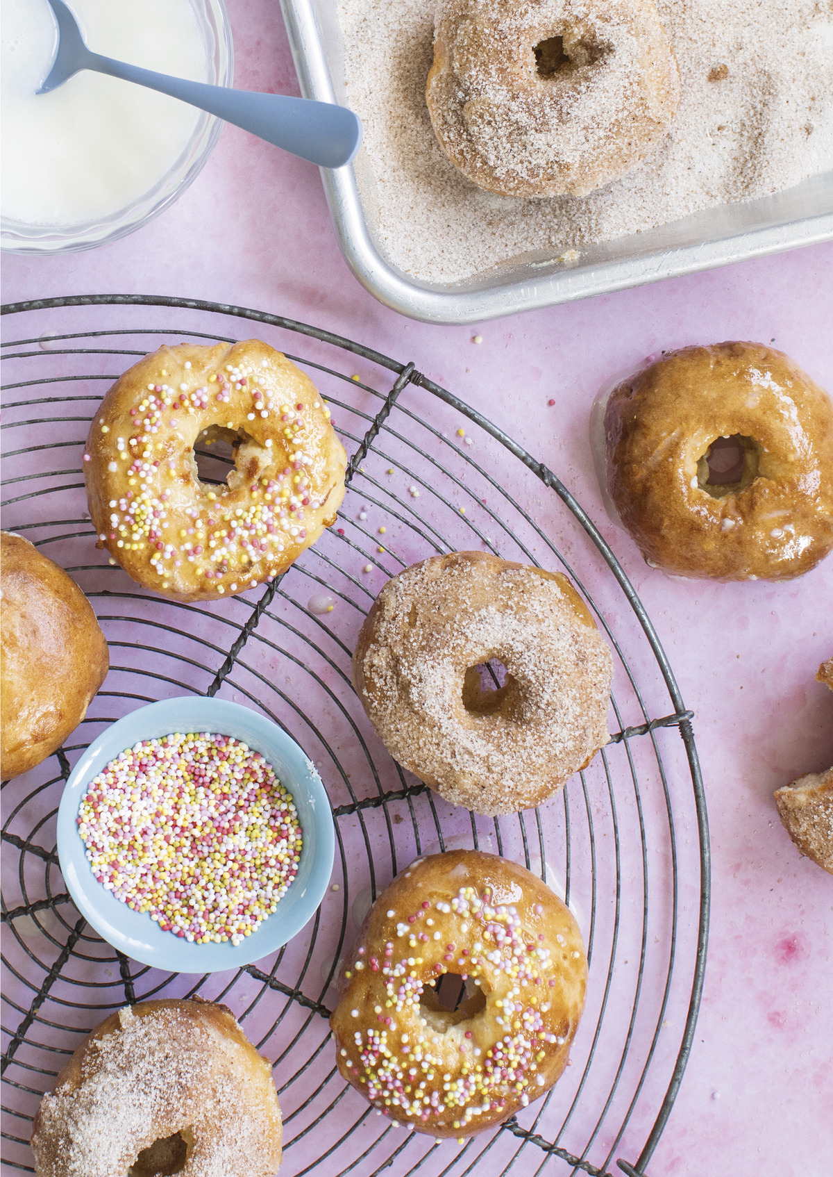 «Αυτός είναι ένας μάλλον "μπακαλίστικος" τρόπος για να φτιάξει κανείς ντόνατς. Παραδοσιακά, φτιάχνονται με μαγιά και χρειάζονται βαθύ τηγάνισμα, αλλά αυτή είναι μια ευκολότερη, απλοποιημένη παραλλαγή που χρησιμοποιεί πολύ λιγότερο λάδι. Μου αρέσει να γίνομαι δημιουργικός με τις γαρνιτούρες μου και συνήθως χρησιμοποιώ διάφορες επιλογές, όπως το γλάσο ή το μείγμα ζάχαρης που σας δίνω», σημειώνει ο συγγραφέας.