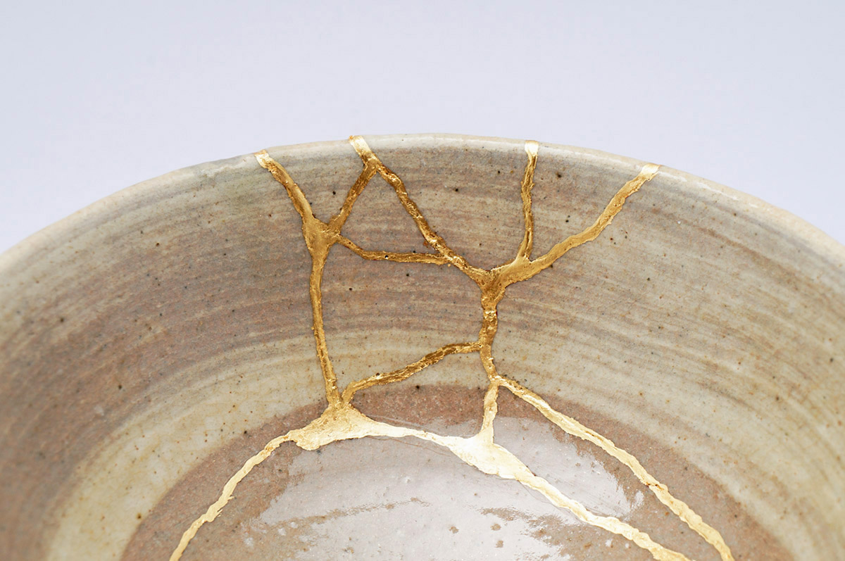 Το kintsugi είναι η τέχνη της επισκευής σπασμένων κεραμικών με χρυσό ή ασήμι, που αναδεικνύει τις ρωγμές αντί να τις κρύβει. Πρόκειται για μια φιλοσοφία που μας καλεί να αγκαλιάζουμε τις ατέλειες και τις πληγές μας ως μέρος της ιστορίας μας.