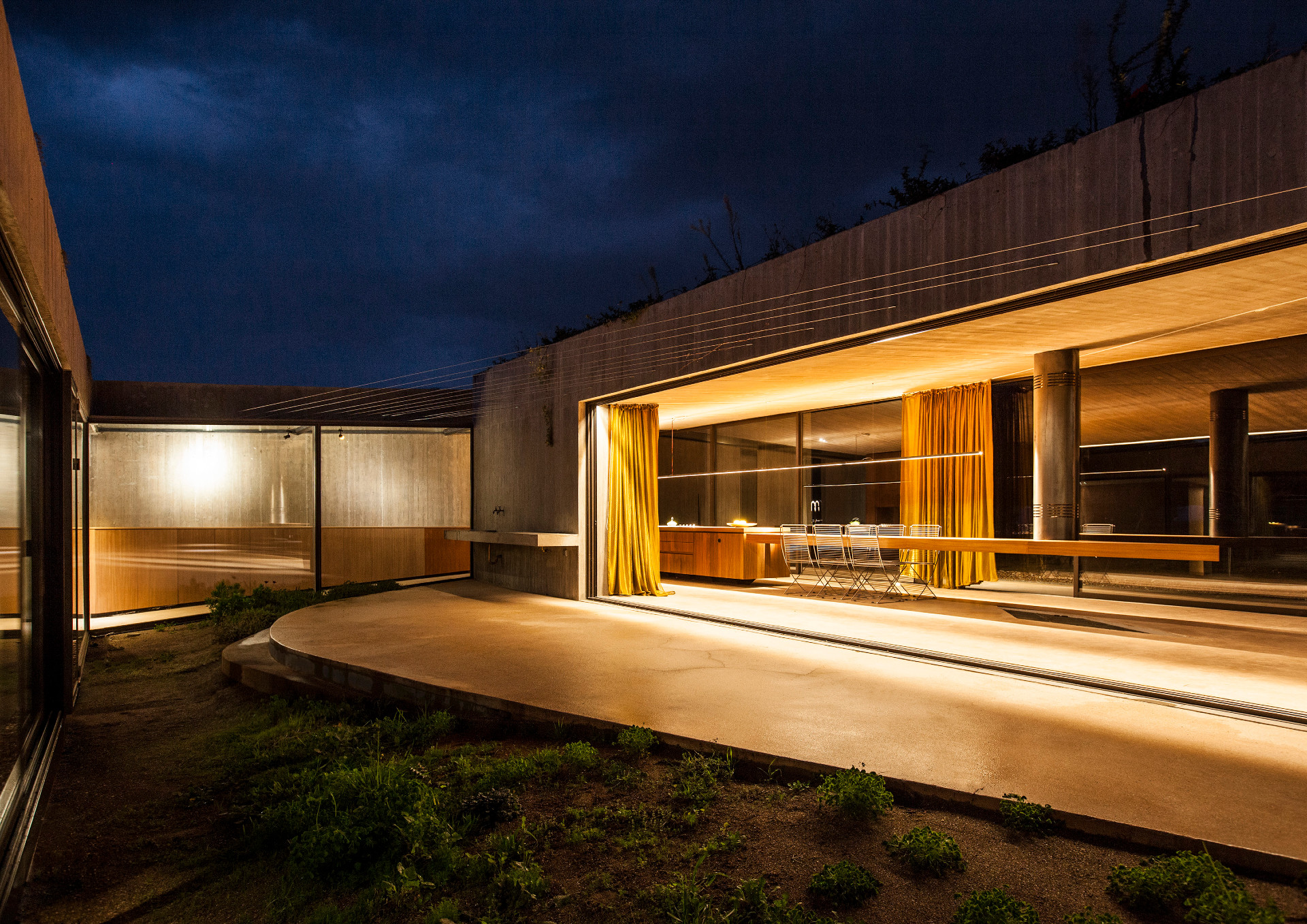 Η τριγωνική αυτή κατοικία καταργεί τα όρια ανάμεσα στον εσωτερικό και τον εξωτερικό χώρο. «Είναι ένα σπίτι που ζητάει από τους ιδιοκτήτες του να ζουν με συγκεκριμένο τρόπο. Κι αυτός ο τρόπος είναι πιο κοντά στη φύση από ότι έχουμε συνηθίσει», υπογραμμίζει ο δημιουργός του σπιτιού.
