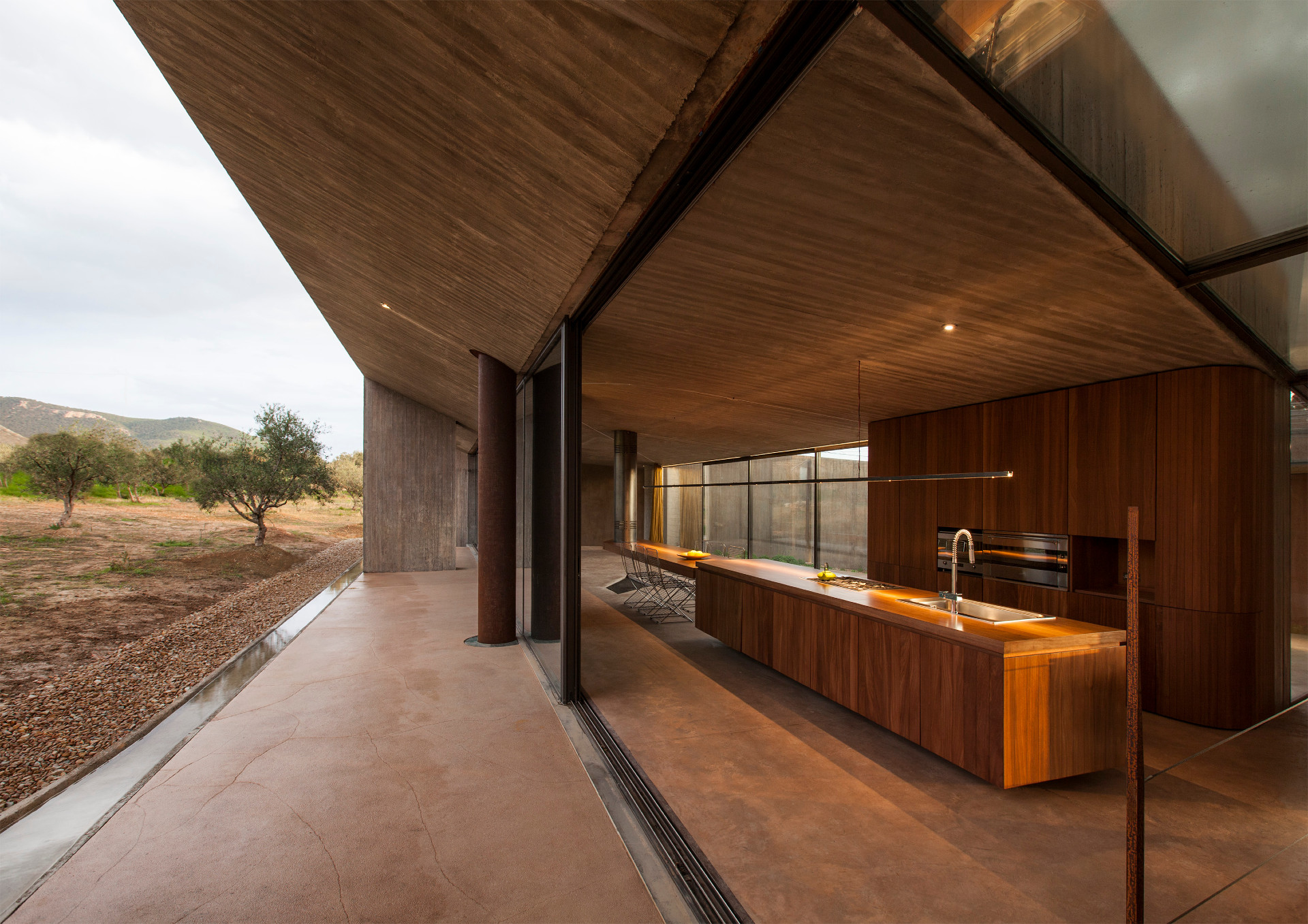 «Έπρεπε να δημιουργήσουμε ένα σχέδιο που θα προσφέρει αίσθηση ασφάλειας και οικειότητας. Κάναμε τις δύο από τις πλευρές του σπιτιού αρκετά ογκώδεις και προστατευτικές με μικρά ανοίγματα και την τρίτη πλευρά ανοιχτή στη θέα του βουνού», εξηγεί ο δημιουργός.