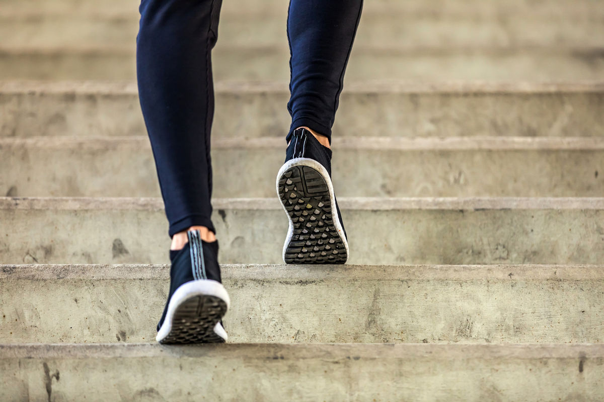 sportsman running up on stairs. Morning workout. Urban scene. Fitness, sport, recreation, workout, healthy lifestyle concepts.